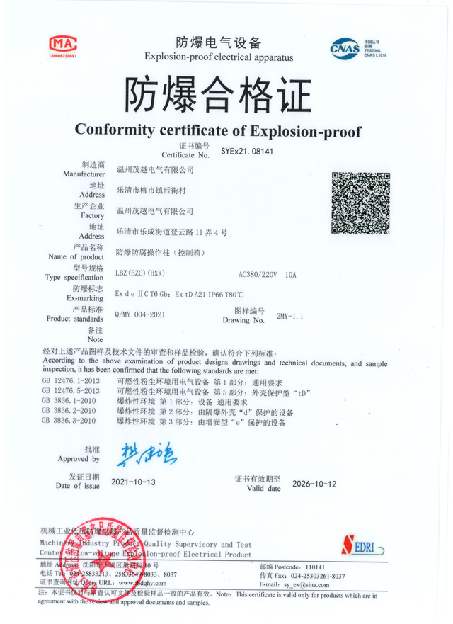 防爆操作柱(檢驗報告)