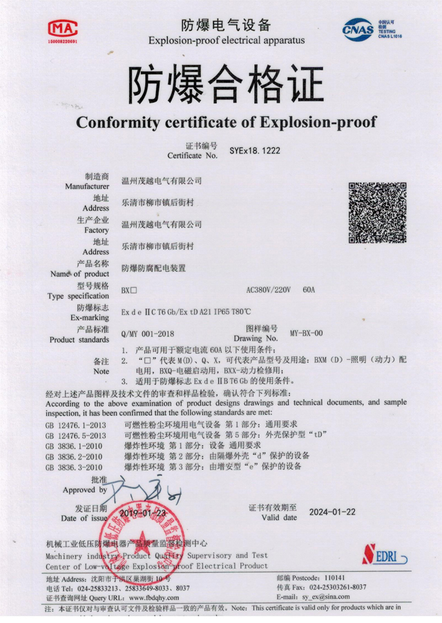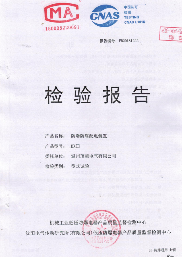 防爆防腐配電裝置(檢驗報告)