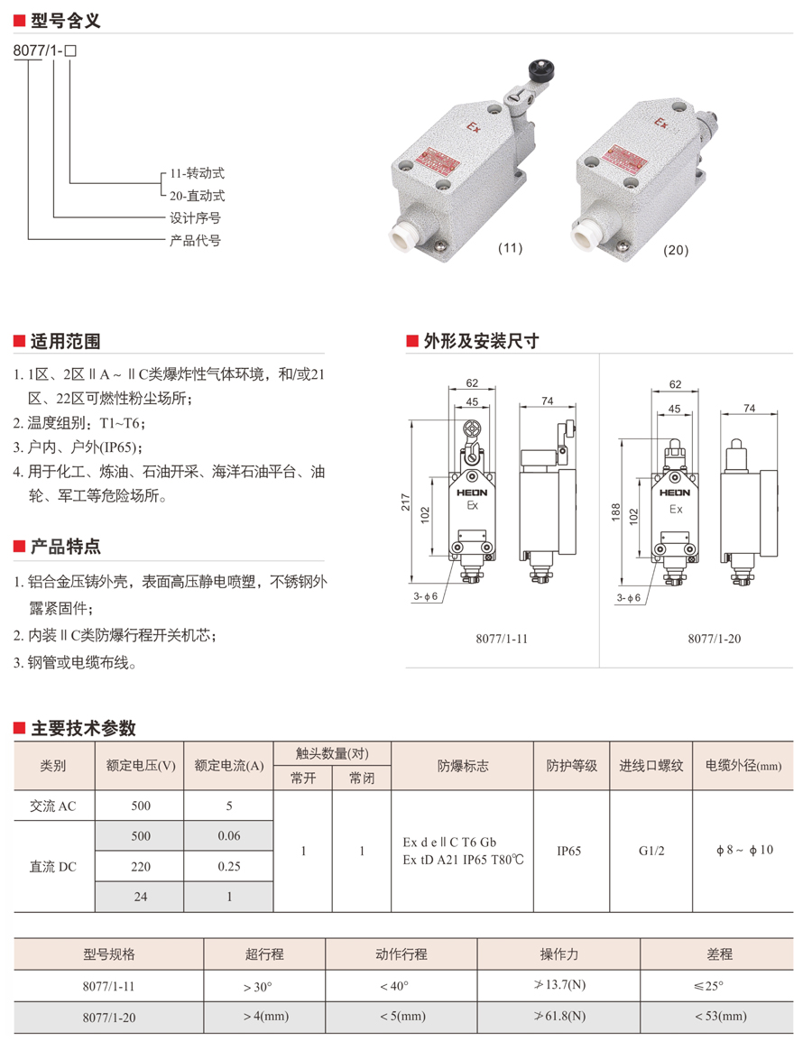 8077/1系列防爆行程開關(guān)(ⅡC)