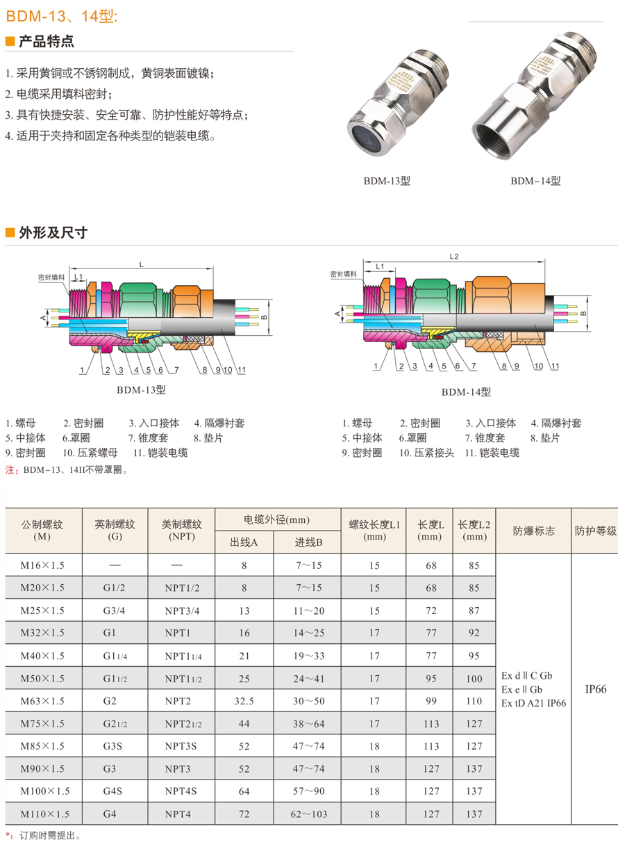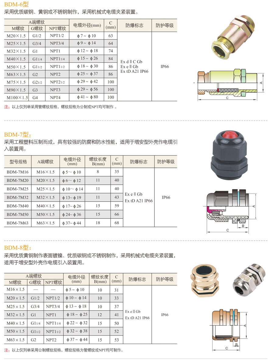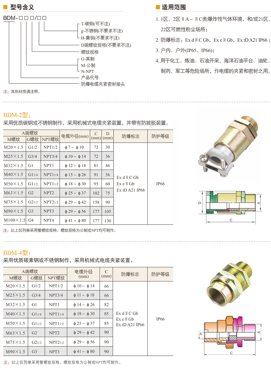 BDM系列防爆電纜夾緊密封接頭(IIC、e、tD)