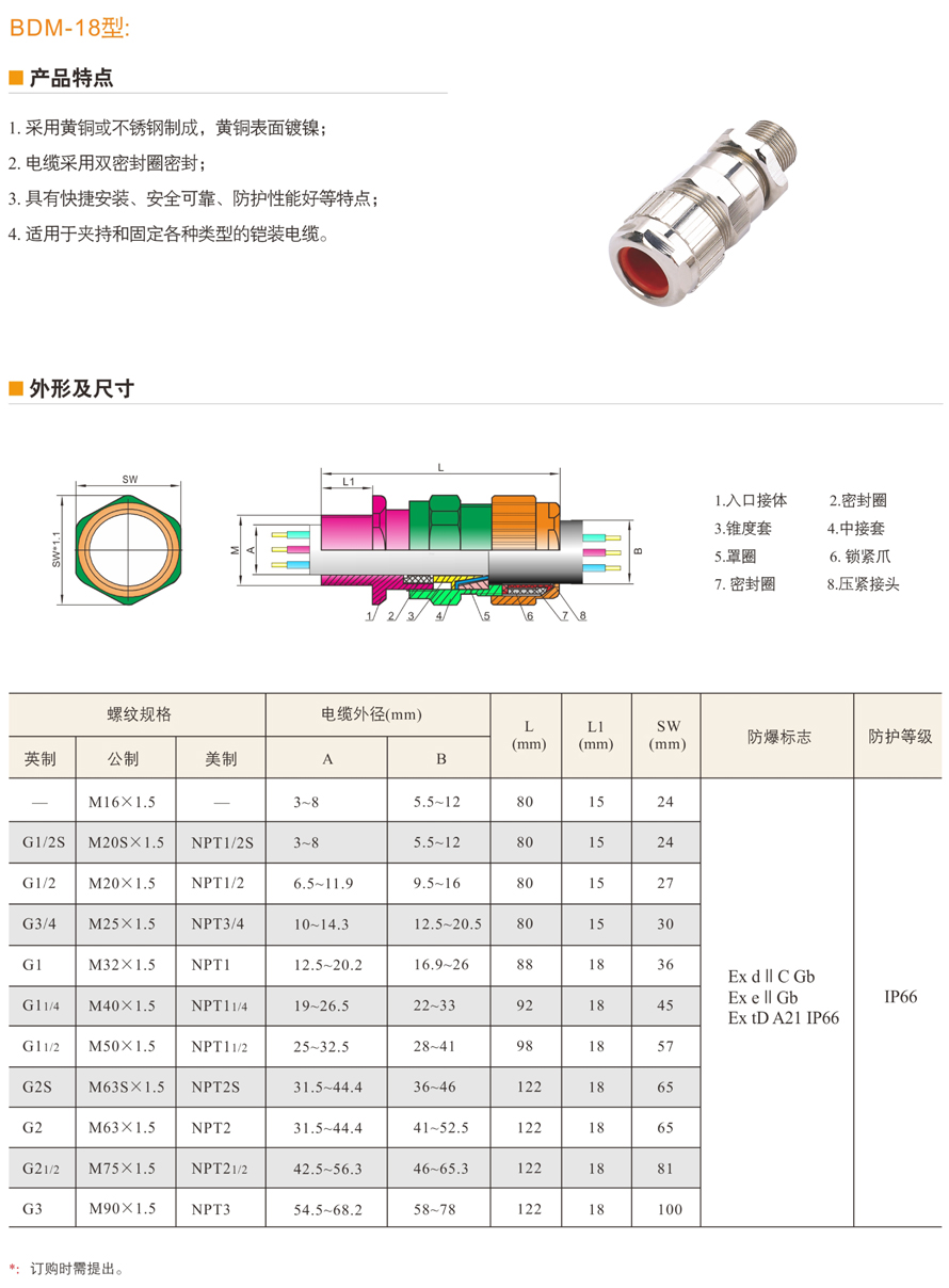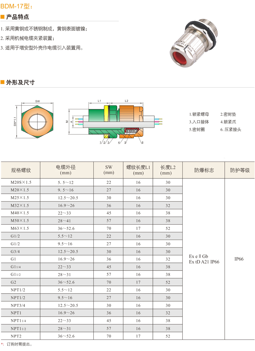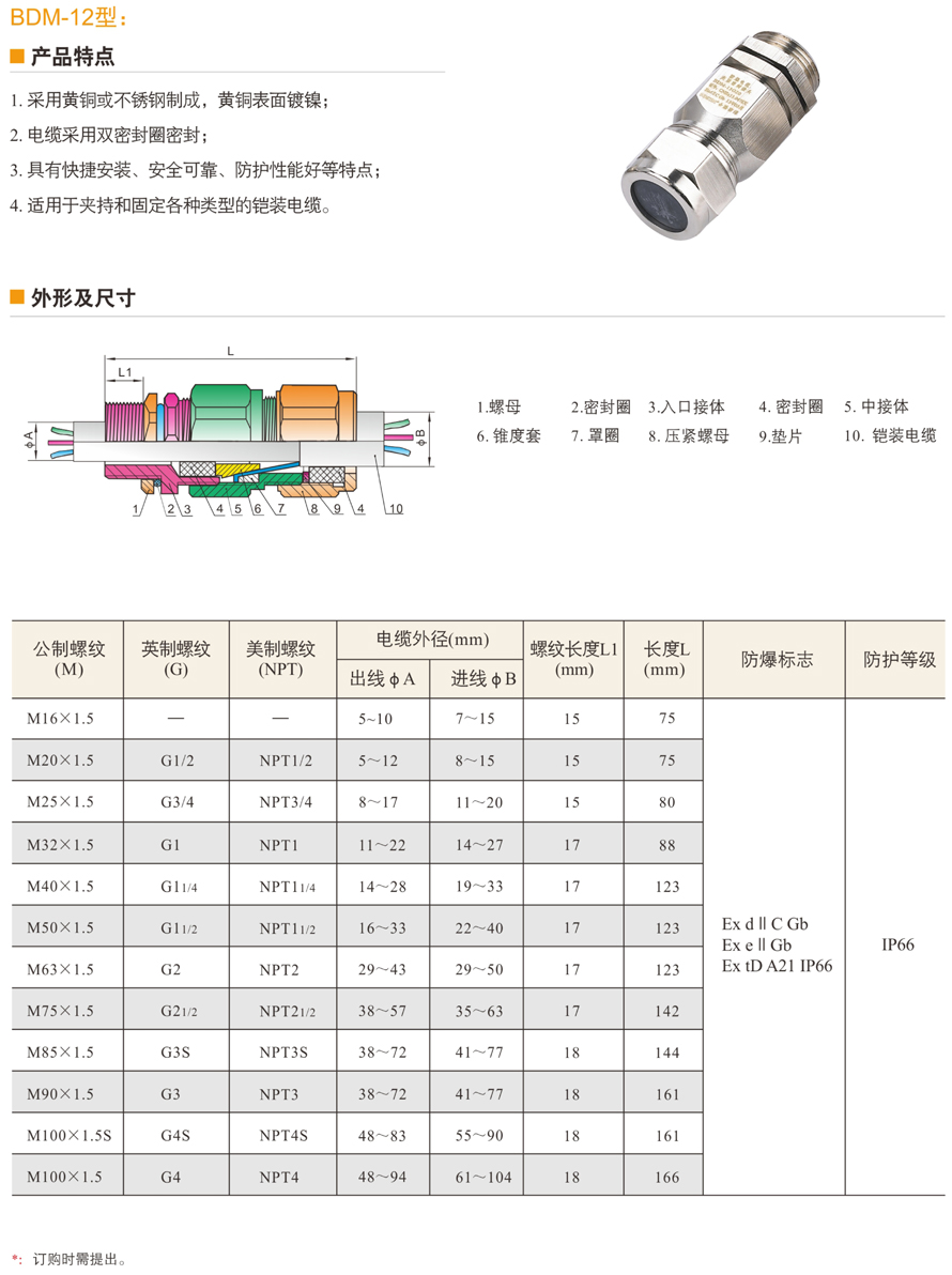 BDM系列防爆電纜夾緊密封接頭(IIC、e、tD)