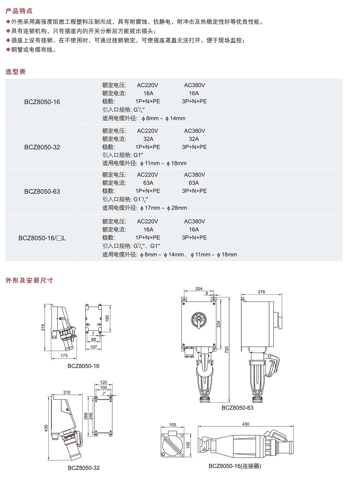 BCZ8050-系列防爆防腐插接裝置(ⅡC、ExtD)
