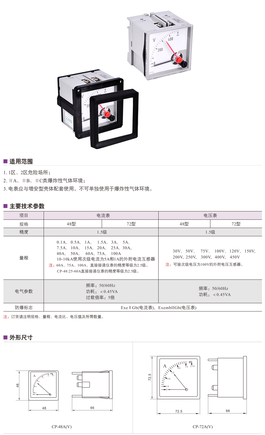 CZ0205 板前導軌型、板后型防爆電壓表元件