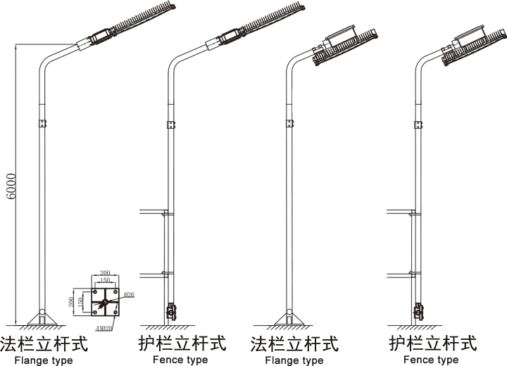 安裝方式:A:吸頂式 b:管吊式 c:吸壁式 d:法欄立桿式 e:護欄立桿式