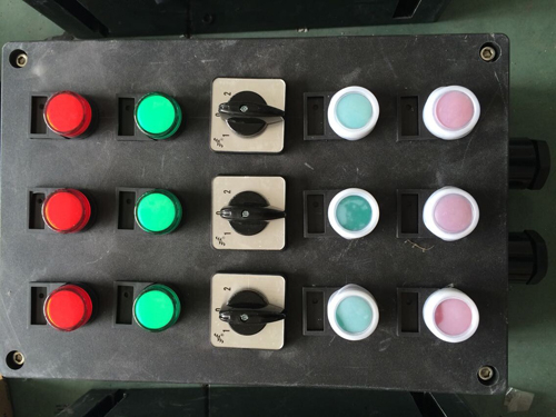 3.內(nèi)部可裝按鈕、控制開關(guān)、儀表、繼電器或其它模塊,其中按鈕、控制開關(guān)、電流表和電壓表均為防爆元件、控制箱內(nèi)裝元件可根據(jù)用戶要求進行排列,可實現(xiàn)多種功能,